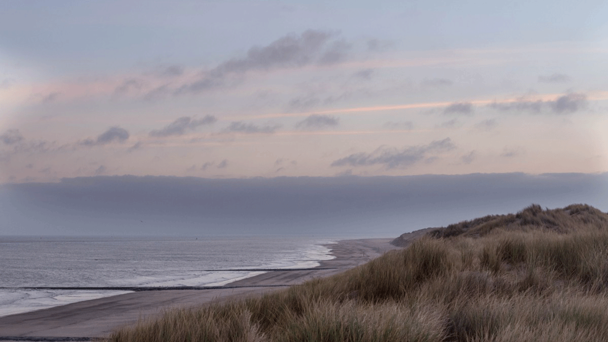 De duintoppen zijn maagdelijk wit en in de natte duinvalleien bloeien orchideeën in tientallen tinten roze en paars. In het oosten ligt de veelkleurige polder met bollenvelden en aan de andere kant van het duin de blauwe Noordzee met het constante geluid van de branding.
