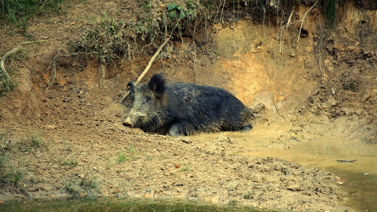Het Vierhouterbos is rustiger en zit boordevol wild. Wie oplet, ziet de wroetsporen van zwijnen langs de paden. In de bossen liggen hun zoelplaatsen. Dat zijn de poelen waarin ze hun modderbaden nemen.