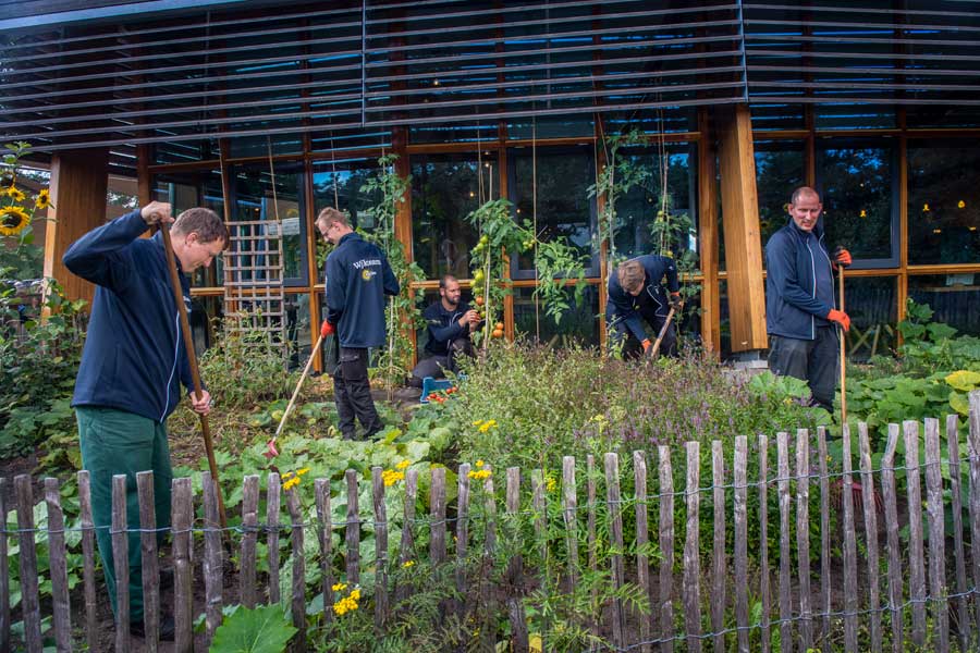 Elke dinsdag siert de banner van zorgorganisatie Aveleijn de entree van Buitencentrum Sallandse Heuvelrug. Hij is daar neergezet door de 5 cliënten van Aveleijn die op die dag bij Staatsbosbeheer aan de slag gaan. ‘Het zegt iets over hun zelfvertrouwen’, stelt Joost Kogelman, begeleider bij Aveleijn. ‘De mannen zijn ontzettend trots op hun werk. Ze ervaren hier dat ze echt iets bijdragen aan onze samenleving.’