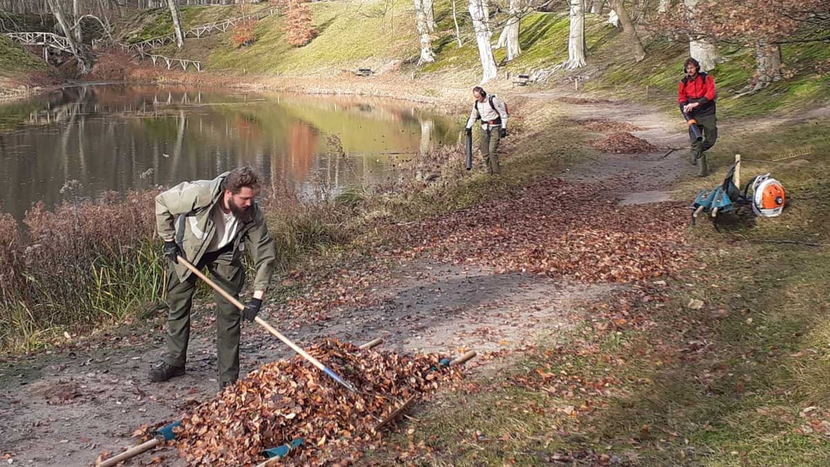 Eens per jaar wanneer het meeste blad van de bomen is gevallen, gaan we samen met vrijwilligers, dagbesteding en reclassering aan de slag om alles weer spik en span te maken. Met behulp van bladblazers blazen we sommige paden en lanen van de buitenplaats weer bladvrij, zodat de paden mooie zandpaden blijven. Dit geeft de buitenplaats een chique uitstraling en voorkomt dat de paden modderig en glad worden. Hierbij wordt kritisch gekeken welk pad we wel en welke we niet schoonblazen.