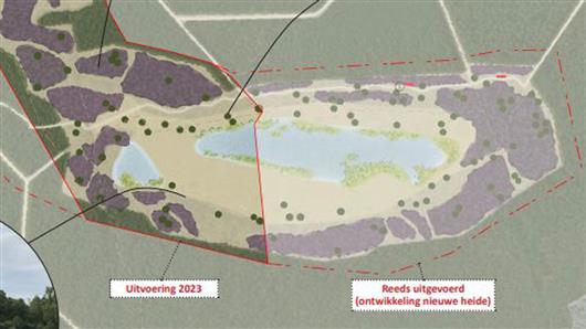 Om de natuurkwaliteiten te behouden voeren we de komende maanden natuurherstelwerkzaamheden uit. Rond het ven worden, net als in de eerste fase, bomen en struiken verwijderd. Boomsoorten die belangrijk zijn voor diersoorten zoals het vliegend hert blijven staan. Waar bomen verdwijnen frezen we de stronken weg en wordt de strooisellaag verwijderd. Daarnaast verleggen we het wandelpad een stuk zodat het iets verder van het ven ligt. Hierdoor creëren we meer rust rond de oever van het ven en wordt het ven beter beleefbaar.