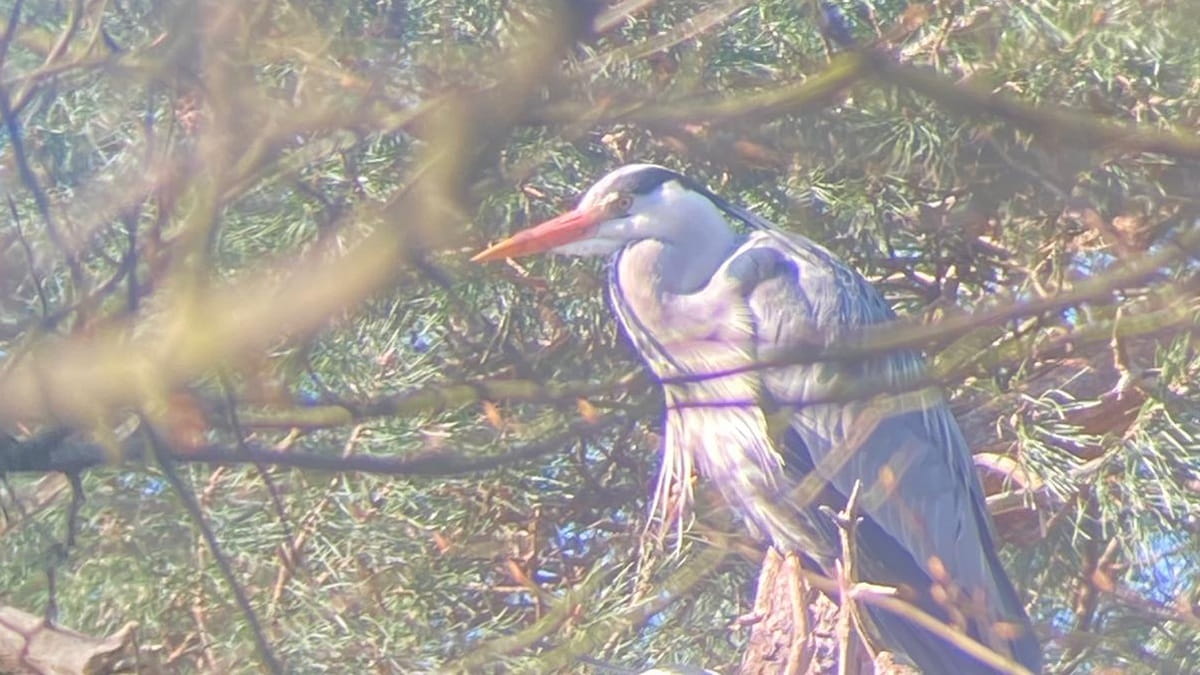 Als je op de parkeerplaats van het Mastbos staat en naar boven kijkt, zie je de contouren van nesten in de naaldbomen. Nesten van één van de vroege broeders in ons land: de blauwe reiger. Nu alles nog kaal is, zijn ze goed te zien. Je zou niet denken dat het vroeger een hele schuwe vogel was.
