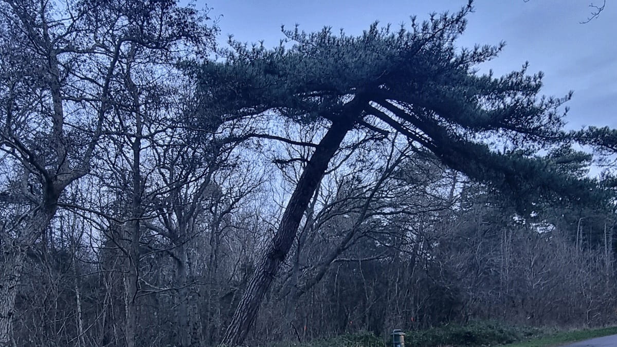Iedereen die ‘de west uut gaat’ kon niet ongemerkt aan de zogenaamde oudste Corsicaanse den in Bomenland voorbij rijden. In de bocht bij de picknick tafel stond deze imposante boom. Al jaren begon deze den steeds meer een beetje te hangen richting de Postweg. Takken werden al afgezaagd om hoge vrachtwagens en de bus ruimte te geven en vanmorgen was het zover; we hebben vastgesteld door middel van meting en waarneming dat deze prachtige boom zover is gaan hangen dat het niet meer verantwoord is. Dus we legden hem om met pijn in het hart.