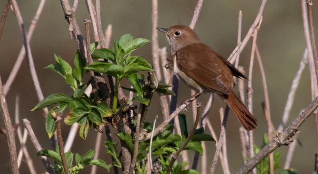 De werkelijk beste zanger zingt echter in het duin. Daar zingt een verwant van des keizers zanger. In het sprookje was het immers de Japanse keizer die alles in het werk stelde om deze zanger dagelijks te horen. De beste zanger in het duin zingt is dan ook meer de zanger voor de elite. Zijn lied is complexer, gevarieerder en soms in zijn eentje tweestemmig. Hij weet alles uit zijn syrinx te halen. Een complex van supersnelle spieren, membranen en kraakbeen aan het begin van de luchtpijp die tot veel meer in staat is dan de simpele stembanden, mondholte, tanden en lippen waar wij mensen onze lucht langs blazen om geluid voort te brengen. De complexiteit van de zang van de nachtegaal, die ook nog eens pas in april aankomt en dan vooral ’s nachts zingt, maakt dat hij meer de operazanger is van het nationaal park Hollandse Duinen.