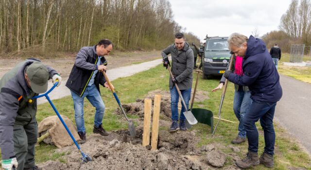 Deze maand zijn we gestart met het aanplanten van nieuwe laanbomen langs het ‘Vliegerlaantje’. Deze plantactie was mogelijk dankzij de financiële bijdrage van Kite, een in Hoofddorp gevestigd biofarmaceutisch bedrijf. Met hulp van het team van Binnenwerk gingen de eerste 76 bomen deze maand de grond in. Op 26 maart kwamen Kite en de gemeente helpen met het planten van een aantal bomen (zie foto).