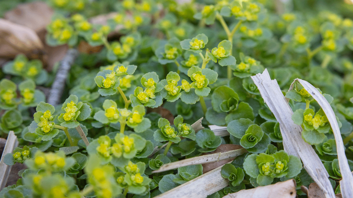 Aan de randen groeit hier en daar paarbladig goudveil. “Deze soort is kenmerkend voor de bronnen op het Springendal. Het heeft een constant natte bodem nodig. Op sommige plekken is het nat genoeg. Maar op de meeste plekken zie je dat het te droog is.” Dat ziet hij ook aan de bomen. In een beekdal horen veel elzen te staan. Je ziet ze nu hier en daar, vlakbij de beek. Maar er staan vooral veel beuken, die hebben een voorkeur voor wat drogere grond en tref je dus niet in een gezond beekdal.” Ook de groei van bramen in het beekdal verraadt dat het op veel plekken te droog is.
