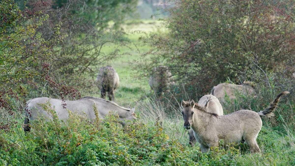Na deze plechtigheden vertrokken we richting vogelkijkhut De Zeearend. Onderweg door de Driehoek genoten we een harem konikpaarden met veulens, die worden vergezeld door een groepje koereigers. Vanaf de ruggen van de koniks kunnen zij mooi over het riet kijken. In vogelkijkhut de Zeearend genoten we met de nieuwe telescopen van een spectaculair uitzicht op slobeenden, kluten, bontbekplevieren, grutto’s en lepelaars en vele andere vogels. Dankzij de samenwerking met GOL en de donaties via het Buitenfonds konden we deze voorzieningen herstellen, iets waar we enorm dankbaar voor zijn.