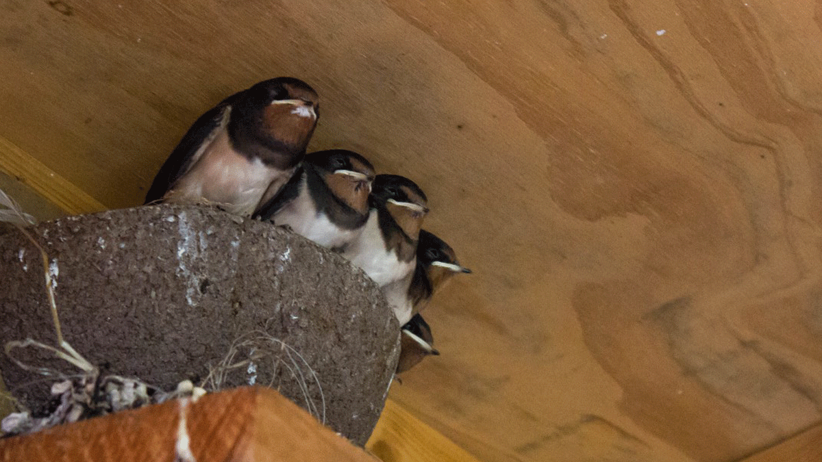 De boerenzwaluw is ook behoorlijk creatief. Van modder, klei en gras maken ze prachtige nesten tegen gevels. Dat is overigens knap, maar dat nest maakt het dat de vogel soms iets in een minder populair daglicht zet. Ze houden er nogal van om hun nest schoon te houden. Op zich niet ongewoon. Als mens poetsen we binnenshuis er ook op los om alles schoon en fris te houden.