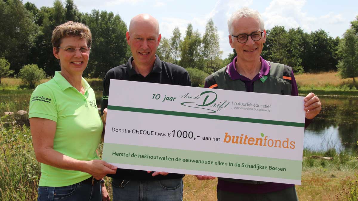 Eén van de acties is het planten van honderd eiken bovenop de wal. Deze eiken moeten in de toekomst de hakhout eiken worden. Om de 10 á 15 jaar zullen deze worden geknot zodat de wal in de loop der tijd weer vol komt te staan met echte knoteiken. Met de mooie donatie van Aan de Drift kunnen deze eiken worden aangeschaft en aankomende winter worden geplant. Ook kan een begin gemaakt worden met het wegzagen van bomen en struiken, waaronder berken en Amerikaanse vogelkers, die niet thuis horen op de wal. Meer informatie over de eikenhakhoutwal.