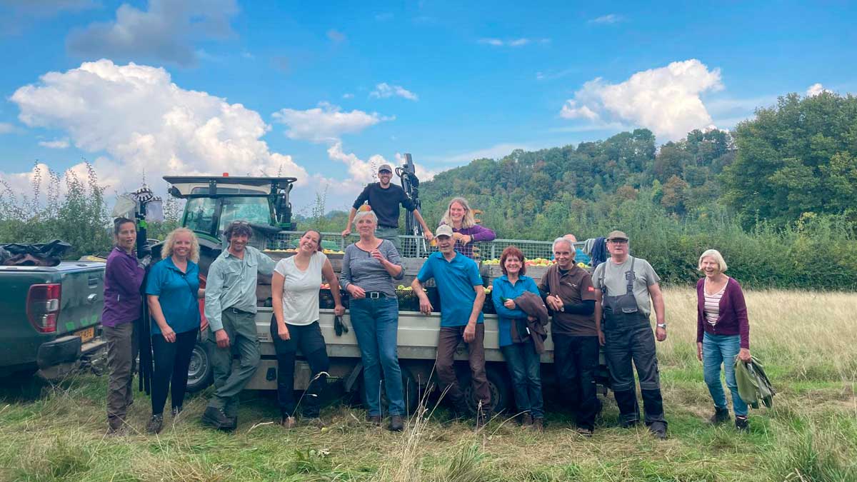 Onlangs hebben we samen met een groep vrijwilligers en onze twee Binnenwerkteams weer appels geplukt. De Binnenwerkteams bestaan uit mannen en vrouwen met afstand tot de arbeidsmarkt. Met hun aanstelling bij Binnenwerk zetten ze voor onze natuur veel puntjes op de i. Zo doen ze veel beheerklussen in de natuur, zoals het vrij maaien van bankjes en bebording en ze geven ondersteuning bij het snoeien van alle hagen en bij al het maaiwerk op de hellingen.