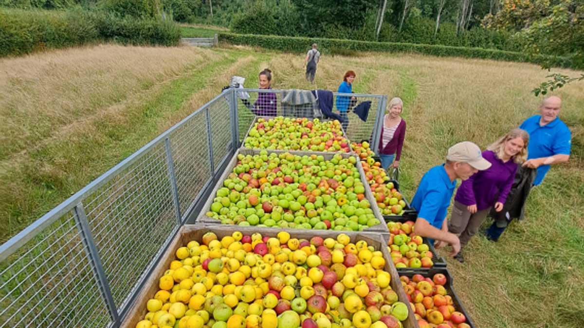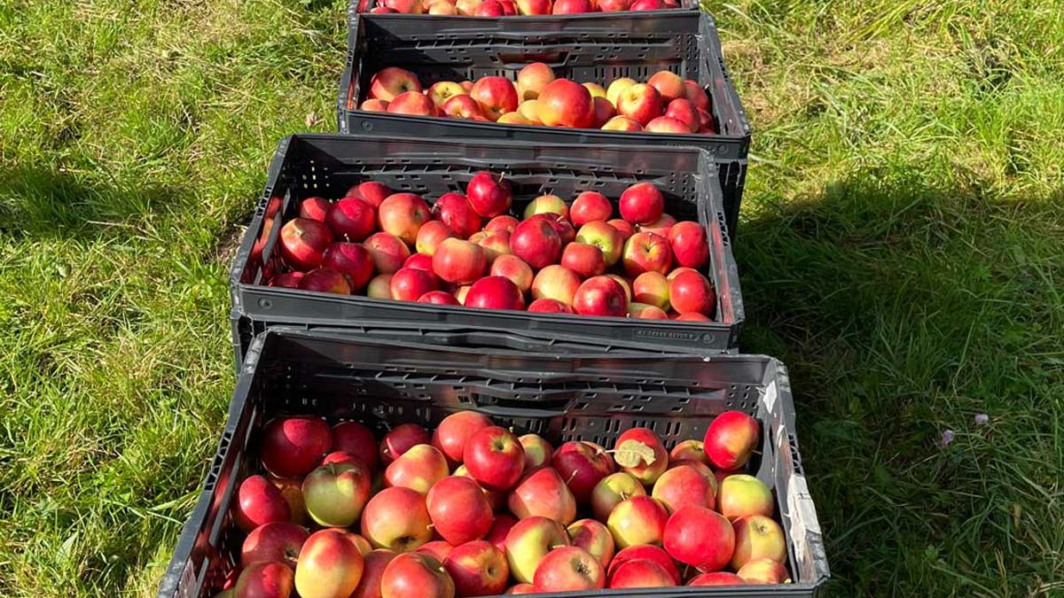 Misschien is het jou ook wel opgevallen in je eigen omgeving dat de fruitbomen het zwaar hadden door de overvolle opbrengst van dit jaar. Een paar bomen in onze hoogstamfruitboomgaard hielden dit gewicht niet meer en er zijn dan ook een paar takken spontaan afgebroken. De appels hingen in zulke grote hoeveelheden aan de bomen, dat we in één dag bijna twee keer zoveel bij elkaar hebben geplukt als vorig jaar.