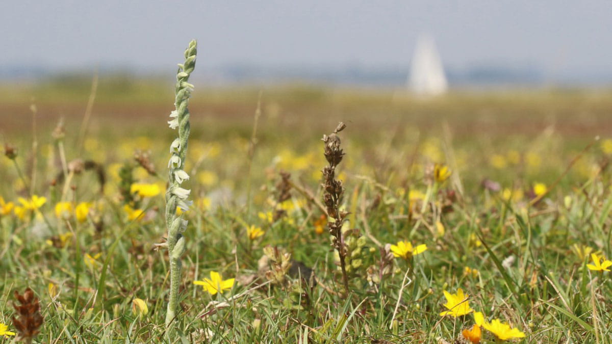 Een groep van achttien fjordenpaarden die hier jaarrond staan, aangevuld door twintig runderen in de zomermaanden, zorgt voor een natuurlijk beheer en de ultieme omstandigheden voor de groei van zeldzame orchideeën zoals de herfstschroeforchis. Hoewel de naam herfstschroeforchis doet vermoeden dat hij in de herfst bloeit, waren er dit jaar halverwege september nog maar enkele - al dan niet uitgebloeide - exemplaren te vinden op het eiland. Marieke en Merijn moesten dus flink zoeken om exemplaren te filmen. De Hompelvoet herbergt met 100.000 tot 125.000 exemplaren de grootste populatie van Nederland en is in augustus het best waar te nemen, herkenbaar aan de schroefvormige steel.