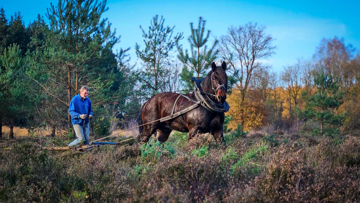 Op dit moment gebeurt dit met inzet van trekpaarden. Op de Noordwolder Meente zaagt de bosmaaier de dennen af. Het paard sleept alle stammen vervolgens het terrein uit. Deze manier van werken heeft een minimale impact op de omgeving. Het is stil, rustig en het verstoort de bodem nagenoeg niet. Alleen in de hoefafdrukken van het paard wordt het zand geroerd. De kleine open plekjes die zo ontstaan zijn een heerlijke leefomgeving voor insecten en een groeiplaats voor typische planten, zoals het muizenoortje en biggenkruid.