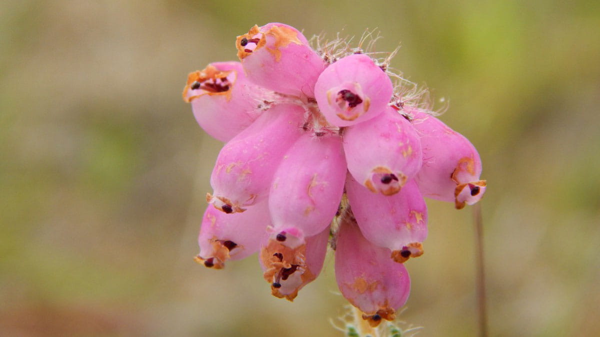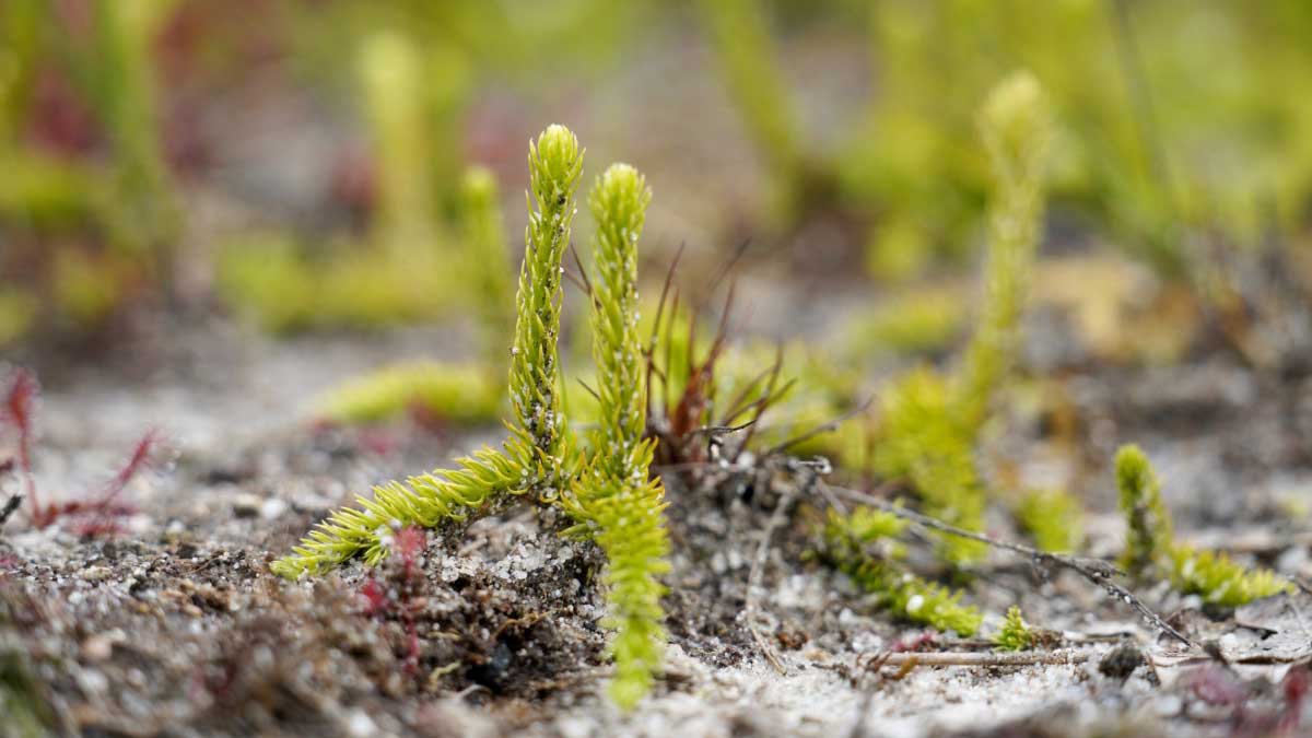 In dit gebied creëert mijn collega de juiste groeiplaats, door jaarlijks te maaien (in de juiste tijd) en het maaisel bij elkaar te harken en af te voeren. Hiermee bevorder of behoud je omstandigheden voor de soorten die je wel graag wilt hebben, zoals de klokjesgentiaan. Op de iets hogere delen in het terrein (kleine zandige bultjes die enkele centimeters hoger zijn dan de lage delen), zie je struikheide ontwikkelen. Een heidesoort die op drogere, zandige standplaatsen voorkomt. In het vochtige deel komen soorten als dopheide, kleine zonnedauw (vleesetend plantje), bruine snavelbies, moeraswolfsklauw en veenpluis voor. Echte soorten die thuishoren in vochtige, voedselarme en licht zure gebieden.