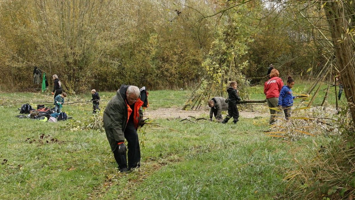 Vanaf de Braakmanboerderij vertrokken ruim 120 kinderen, (groot)ouders en andere natuurliefhebbers vol goede moed het gebied in. In kleine groepen werd gewerkt aan allerlei klussen: elzenopslag verwijderen, begroeiing uit een oude kreekrestant halen en uitzichten vrijmaken. Zelfs het wat wisselvallige herfstweer kon de stemming niet drukken – overal hoorde je gelach, zagen en gesjouw.