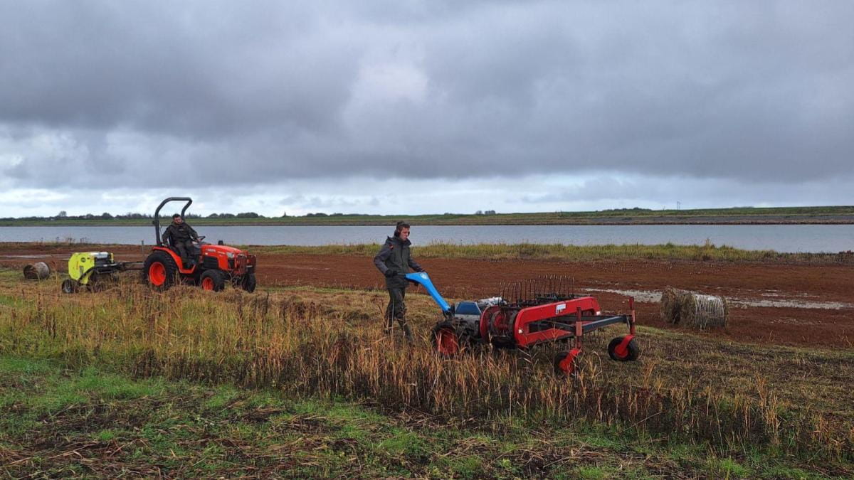 In samenwerking met de aannemer en dankzij goed weer konden we in oktober beginnen met maaien en afvoeren. Met de trekker werd in banen gemaaid van binnen naar buiten, zodat woelmuizen en insecten konden schuilen in de overgebleven delen. Vervolgens harkte een bandhooier het maaisel in smalle ruggen, waarna het met een trekker en minibalen-pers werd geperst tot kleine balen. In drie dagen tijd maakten drie man maar liefst 1.300 handzame minirollen hooi. Daarnaast werd een deel van het gebied 10 centimeter boven het maaiveld weggemaaid, zodat de noordse woelmuis voldoende dekking houdt tegen roofvogels en de kruipwilg werd op de doorgaande manier gemaaid. Verspreid over het eiland zijn er ook lagere en minder ruige delen onbeheerd gebleven.