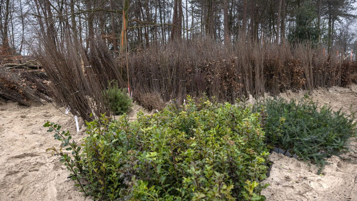 Dit seizoen worden er maar liefst 40 tot 50 duizend jonge bomen en struiken geplant in verschillende gebieden binnen het Almeerderhout. Deze jonge bomen en struiken (ook wel 'bosplantsoen' genoemd) worden kort voor de start van het planten geleverd bij Staatsbosbeheer. De jonge bomen (met kale wortel) zijn op dat moment in rust, maar ook erg kwetsbaar. Daarom worden ze tijdelijk opgeslagen in onze zogenaamde plantkuil. Hier verblijven de jonge bomen tot het moment dat ze daadwerkelijk worden aangeplant. Er worden diverse soorten loofbomen, naaldbomen en struikvormers aangeplant. Op die manier zorgen we voor een divers en toekomstbestendig bos met een verscheidenheid aan plant- en diersoorten. Een paar voorbeelden van wat er geplant wordt: de tulpenboom (drachtboom voor bijen en vlinders), moerascipres, hopbeuk, amandelwilg en nog veel meer verschillende soorten!