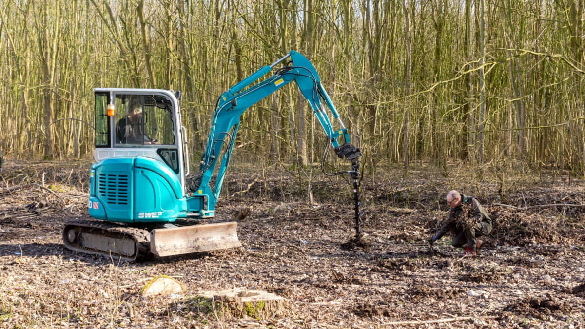 Het planten van het bosplantsoen gebeurt middels een kraan met een plantgatboor. Hiermee wordt een gat in de grond geboord waar de jonge bomen en struiken in worden gestopt. Vervolgens wordt het gat weer aangevuld met grond en kan het bosplantsoen gaan groeien.