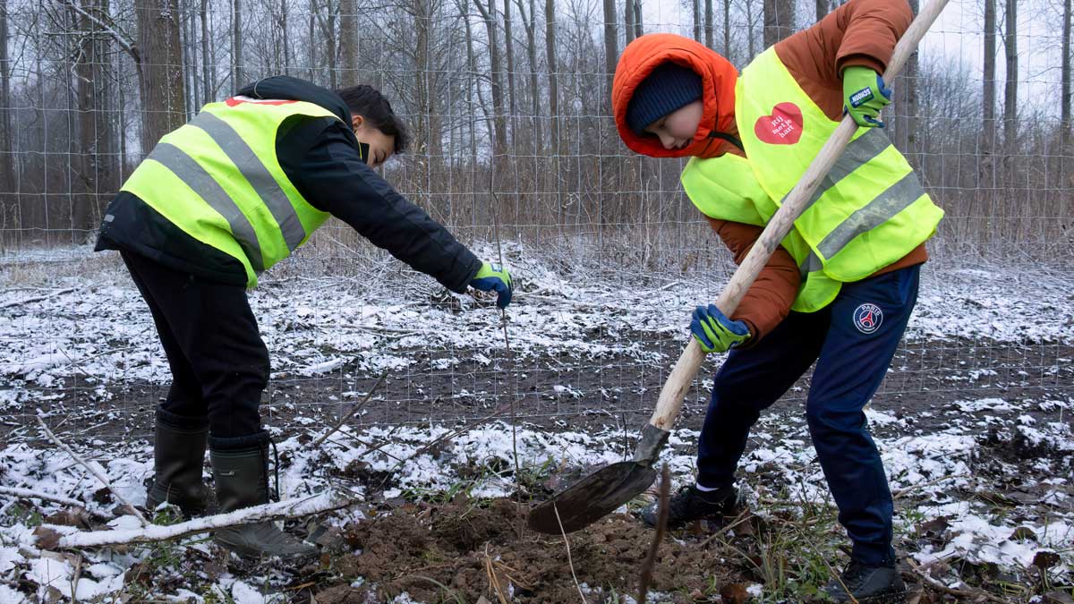 De Dordtse schoolklas had geluk! Het was een magisch mooie winterochtend. Na ontvangst door de boswachter knisperde een dun laagje sneeuw onder de voeten terwijl we richting de plantlocatie liepen. Het hele bos lag gehuld onder een witte deken. Het deed bijna sprookjesachtig aan.
