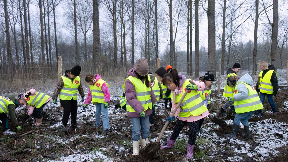 Op donderdag 29 januari was het gezellig druk in de Elzen nabij Dordrecht. Staatsbosbeheer team Biesbosch kreeg extra hulp bij het plantwerk in het bos. Groep 6 van basisschool de Meridiaan trok gewapend met muts en schop het bos in, om een bosvak vol te planten met jonge zwarte walnoten.