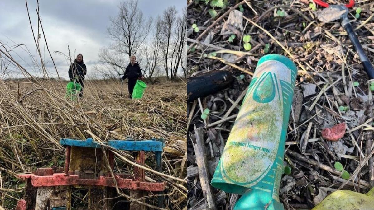 “Tijdens het struinen langs oevers en door rietkragen kom je werkelijk van alles tegen: stoelen, touwen, wattenstaafjes en heel veel plastic. In alle soorten en maten. Zo vonden we tijdens een opruimactie zelfs een halve surfplank waar een boom doorheen was gegroeid. Die moet er al jaren hebben gelegen. Ook troffen we oude flessen schoonmaakmiddel aan uit de jaren ’70”, vervolgt Cynthia.