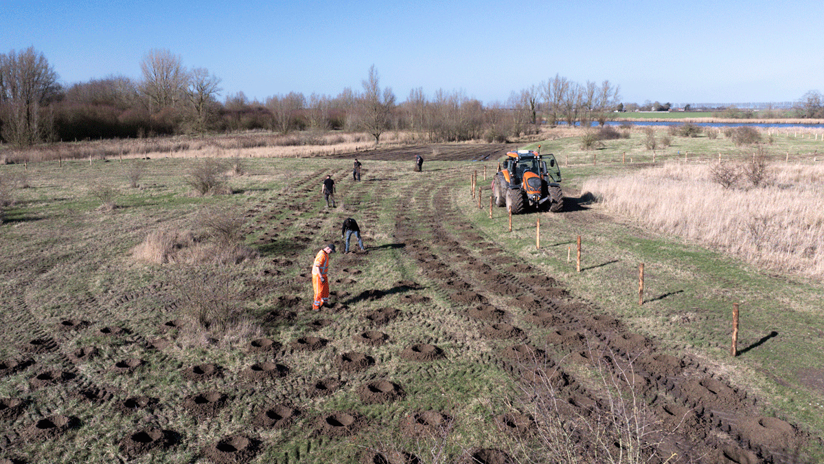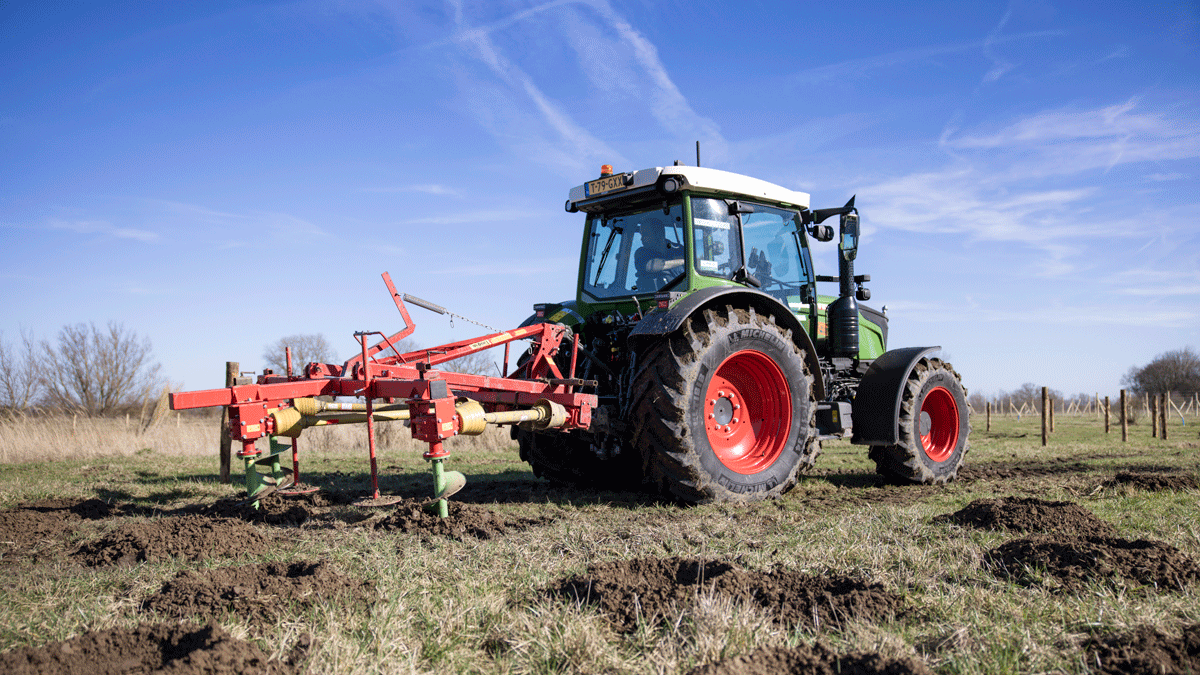 Ze lopen langs een kronkelige strook omgewoelde aarde. Met een machine worden gaten in de grond geboord, waarna de bomen met de hand in de gaten worden geplant. Er is bewust gekozen om het landschap niet eerst volledig om te ploegen, maar juist de bestaande structuren te volgen en te behouden. Ilse: “Door de vormen van het landschap te volgen, en niet te kiezen voor grote vierkante bosvakken, sluiten we aan bij wat er al ligt. Dat is niet alleen landschappelijk logisch, maar zorgt er ook voor dat bijvoorbeeld vleermuizen en de eerder genoemde kiekendieven, die de structuren als vliegroute gebruiken, hier geen hier geen last van hebben. Bovendien blijven er zo ook voldoende stukken open grasland over wat weer goed is voor insecten.”