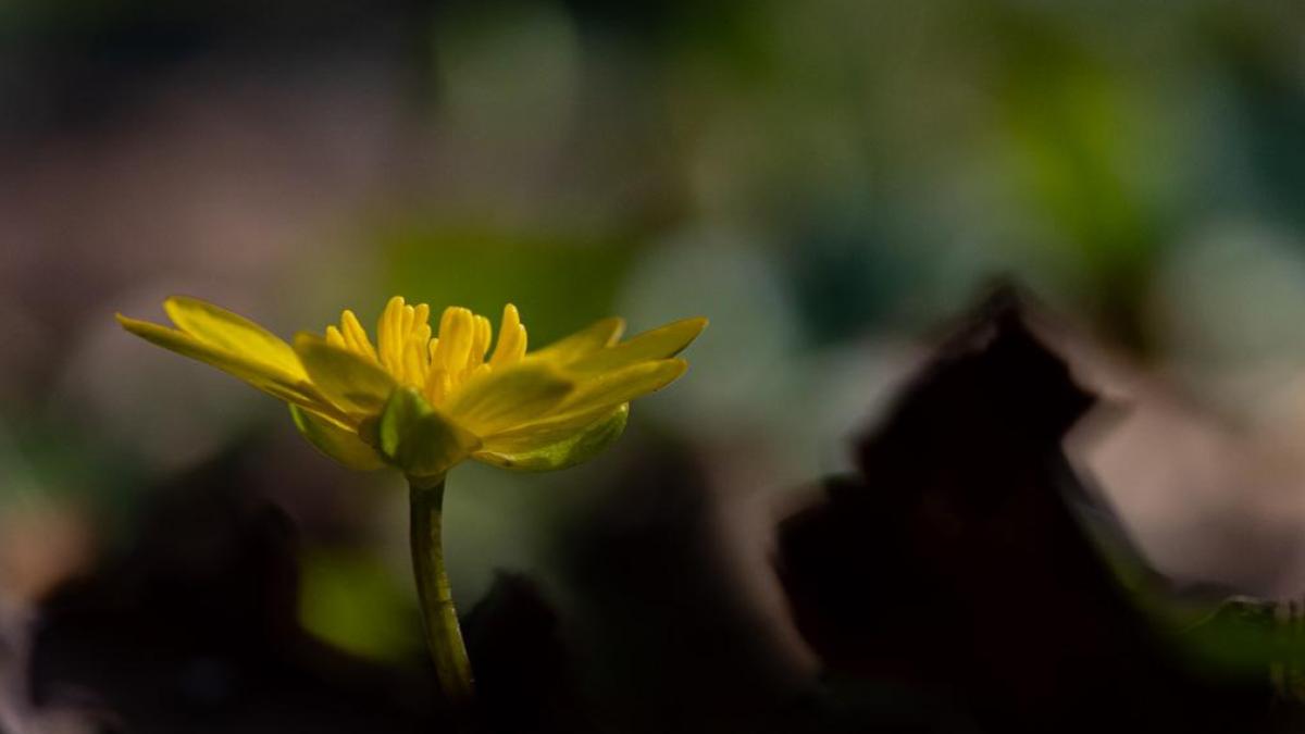 Maar hoe vertrouwd dit pad ook is, in deze tijd van het jaar vertraagt mijn pas ultiem. Ik geniet van het prachtig geel van het gewone speenkruid. Zie hoe ze haar blaadjes ontvouwt als de zon haar streelt tussen de kale beukentakken boven haar door. Een van de bloemen doet me door de knieën gaan. Ik probeer haar schoonheid vast te leggen. Even draait de wereld onopgemerkt door.