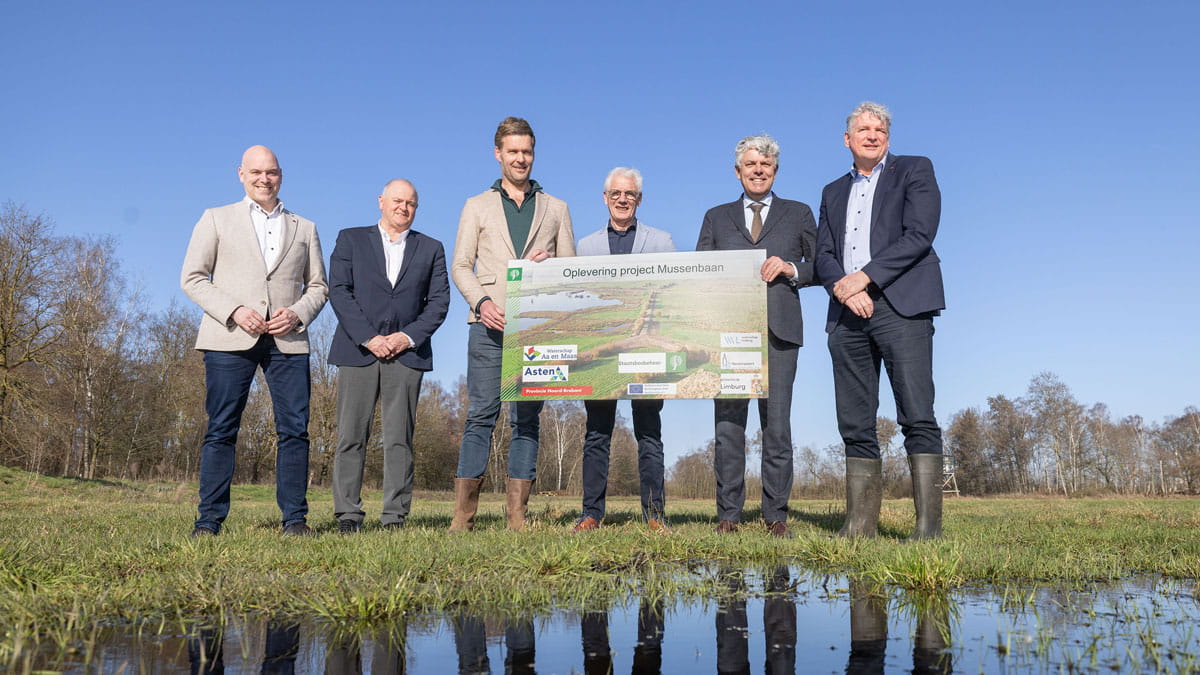 In maart 2025 ondertekenden gedeputeerden van de provincies Limburg en Noord-Brabant, samen met bestuurders van waterschap Limburg, waterschap Aa en Maas en Staatsbosbeheer de Nazorgregeling Mussenbaan. Freek Rebel, provinciehoofd Staatsbosbeheer Noord-Brabant, is blij met deze regeling. “De basis van deze nazorgregeling is dat omwonenden en perceeleigenaren worden ontzorgd bij onvoorziene wateroverlast die mogelijk te relateren is aan de inrichtingsmaatregelen in het gebied. Staatsbosbeheer is voor de omgeving het aanspreekpunt. Natuurlijk lieten we uitgebreid onderzoek uitvoeren voordat we met de werkzaamheden zijn gestart. Daaruit bleek dat de gevolgen voor de omgeving gering zijn. Maar zoals het spreekwoord zegt: vertrouwen komt te voet en gaat te paard. Het is belangrijk dat de omgeving vertrouwen houdt in de gebiedsprocessen. Dat vertrouwen versterken we onder andere door deze nazorgregeling.”