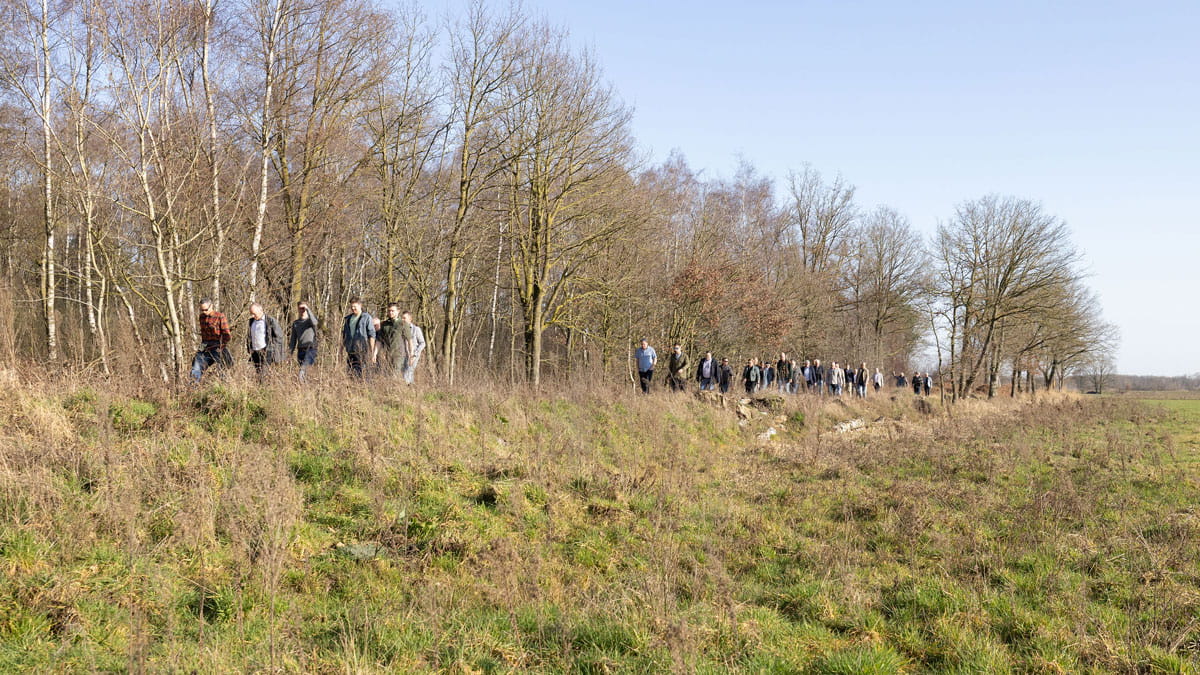 Met een verfrissing in de hand en de late middagzon op hun gezicht staat een gemêleerde groep van ongeveer 40 personen met elkaar te praten. Bestuurders, agrariërs, de aannemer, een boswachter en diverse omwonenden staan samen op een kade aan de rand van de Groote Peel. Ze zijn bij elkaar om stil te staan bij de afronding van het project Mussenbaan. Na een aantal jaren van voorbereiding en een paar maanden van uitvoering is het Mussenbaangebied nu ingericht als buffer voor hoogveenherstel in de Groote Peel.