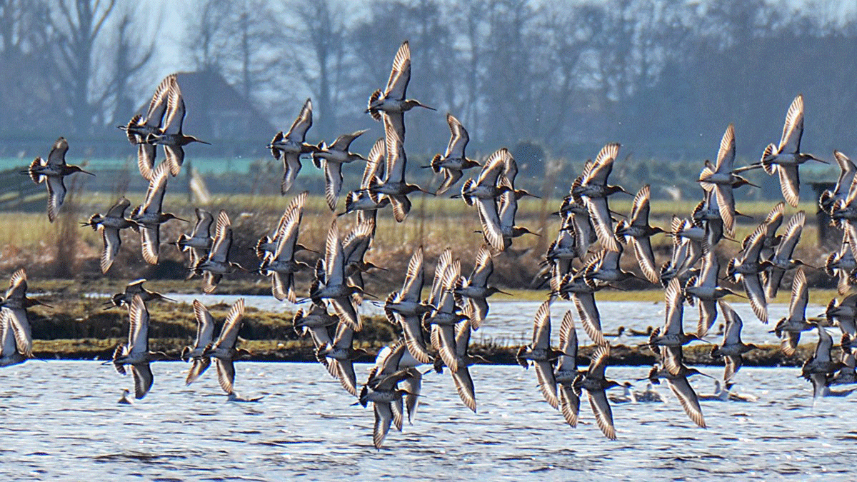 Alleen een groep Canadese ganzen laat zich zien in de koude wind die eind maart over Waterland-Oost jaagt. Verder lijkt het uitgestorven. Maar schijn bedriegt. Zodra de wind even gaat liggen, fladderen ze op: grutto’s. Ze jagen achter elkaar aan en laten met hun kenmerkende grutto-grutto-geluid luidkeels van zich horen. Het is een drukke tijd voor grutto’s. Ze zijn net terug uit hun overwinteringsgebieden in Afrika, moeten hier een territorium claimen en verdedigen en hun partner zoeken. Rond eind maart maken ze een nest op de grond, vaak in een pol gras, en zijn ze druk met baltsen en paringen.